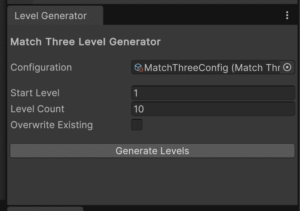 By the end of Week 1, I had the game’s skeleton and a prototype level editor in place. We could define a level’s layout, save it to a ScriptableObject, and it would automatically get added to our level config asset. This made it super convenient to generate multiple levels quickly. In short, we had a working match-3 prototype ready to build upon.